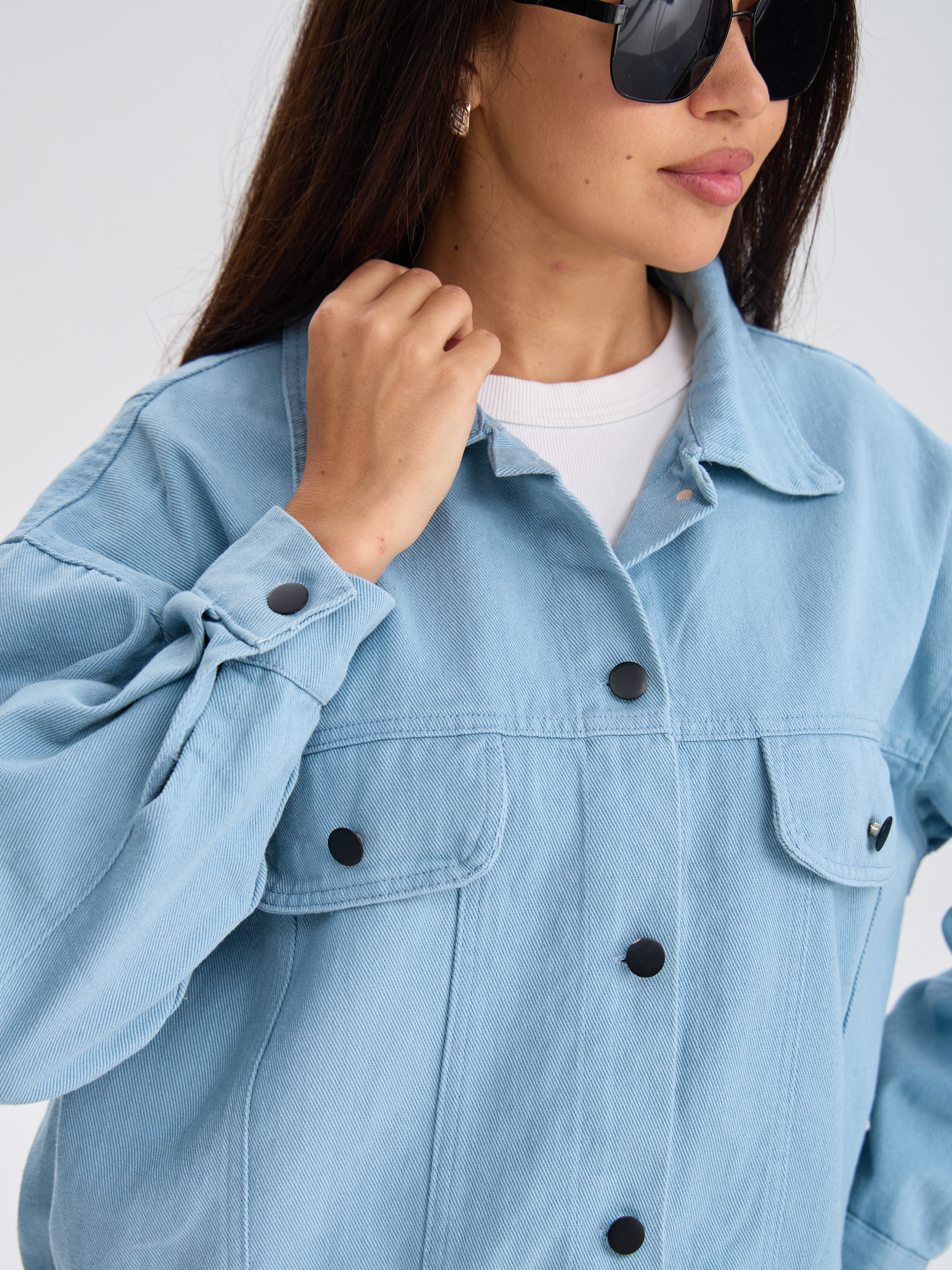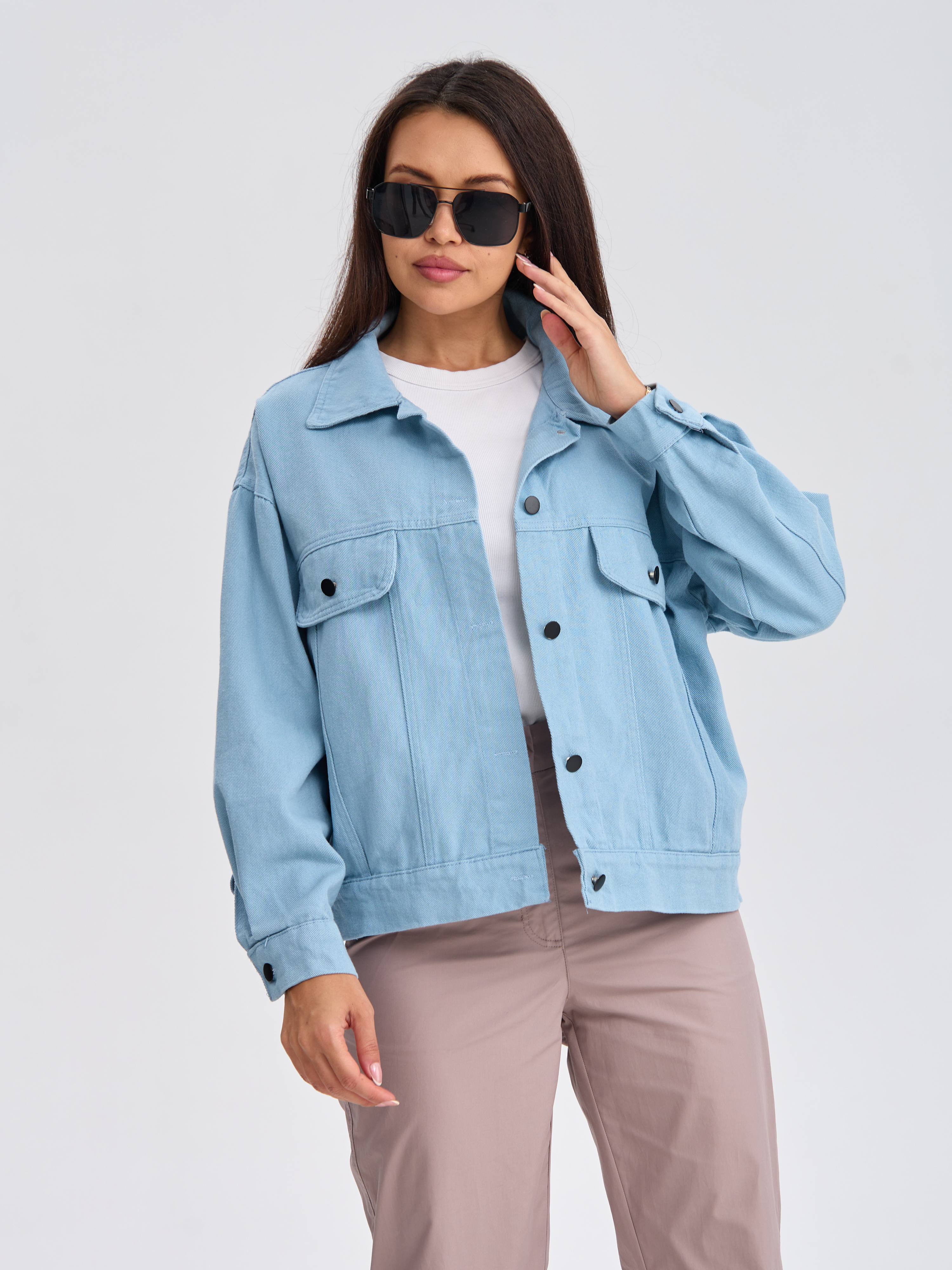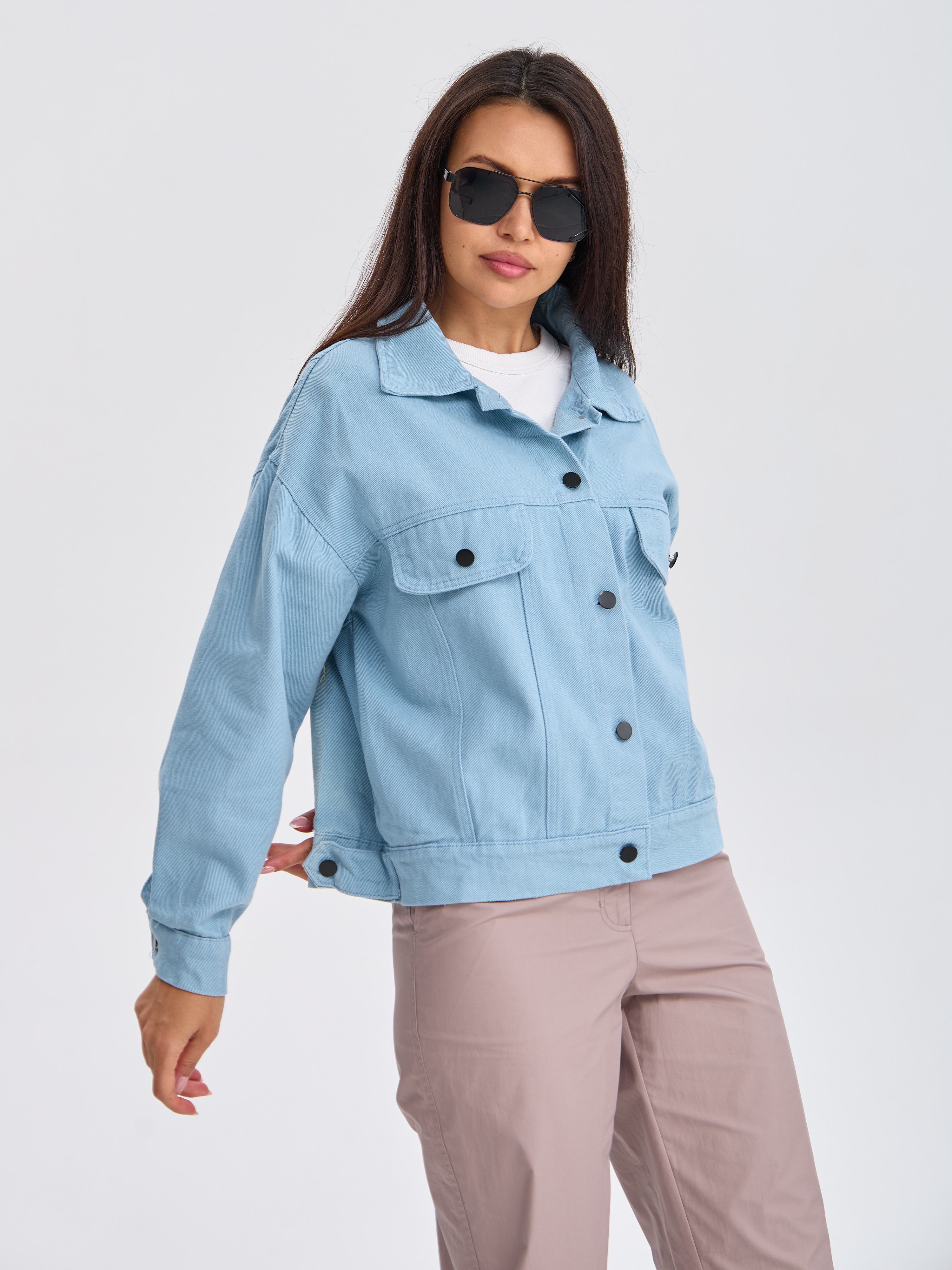 Эта стильная джинсовая куртка станет вашим лучшим другом весной и осенью! Она идеально подчеркивает фигуру, подходит под любой образ — от повседневного до вечернего. Голубой оттенок универсален и освежает образ. Куртка выполнена из качественного денима, который прослужит долго, сохраняя форму и цвет. Ваш стиль - ваш характер.